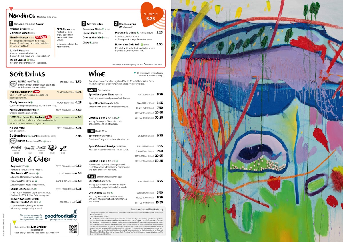 Nando's Gloucester Quays, located at Unit 105a, Gloucester Quays Designer Outlet, offers a delightful dining experience with its signature flame-grilled peri-peri chicken and a vibrant atmosphere that has become synonymous with the brand. The menu is an exciting blend of bold flavors, with a strong emphasis on the iconic peri-peri chicken, served in various spice levels to suit all tastes, from mild to extra hot.